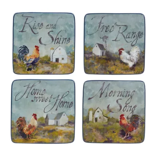 Certified International Rooster Meadow 4-pc. Earthenware Appetizer Plate