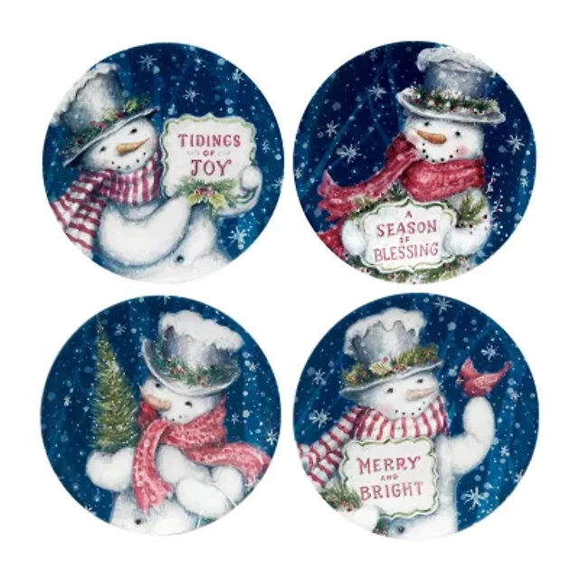 Certified International Snowman Greetings 4-pc. Earthenware Dessert Plate