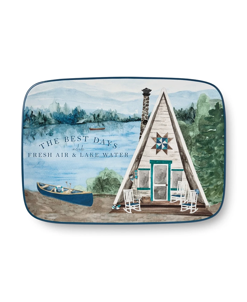 Elevate your entertaining with the Wake At The Lake Rectangular Platter. Ideal for serving everything from appetizers to main courses, its generous surface area accommodates a variety of dishes, making it a versatile addition to your serveware collection. This platter is both microwave and dishwasher safe, ensuring it's as practical as it is beautiful. Whether for a casual lakeside gathering or an elegant dinner party, this platter adds a touch of charm and sophistication to any occasion. Its vibrant artwork and sturdy construction make it a functional statement piece, perfect for creating memorable dining experiences.