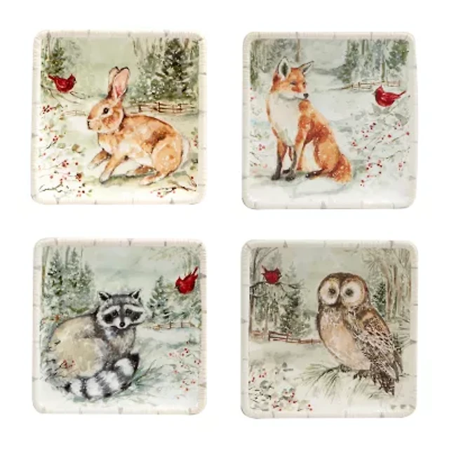 Certified International Winters Joy 4-pc. Earthenware Appetizer Plate