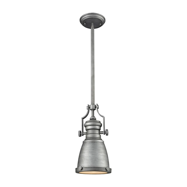 Chadwick 1 Light Pendant in Weathered Zinc with Frosted Glass Diffuser