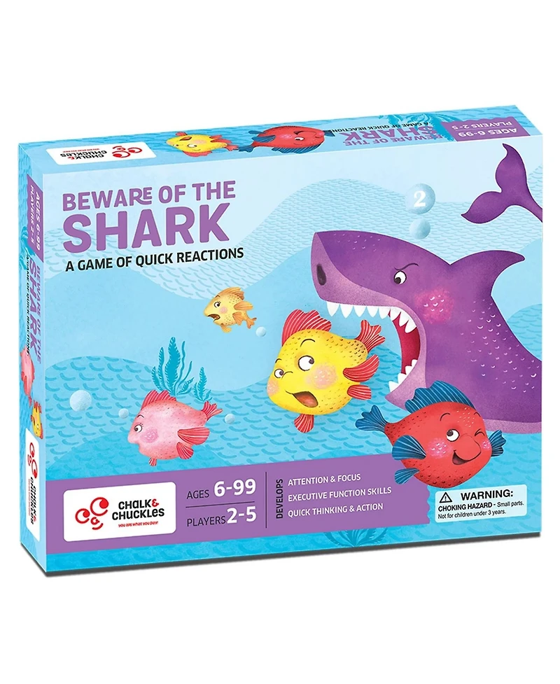 Beware of the Shark by Chalk and Chuckles is an action-packed, fast-paced reflex and reaction game that guarantees hours of fun for kids and families. Easy to learn and simple to play, this thrilling game keeps players on their toes as they race to avoid a shark attack!