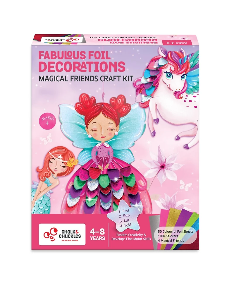 Create four fascinating 3D magical wonders with metallic embellishments with the Chalk and Chuckles Foil Decoration – Sea Animals kit! Great for fostering creativity and developing fine motor skills.