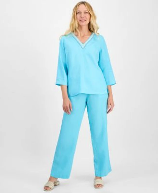 Charter Club Womens 100 Linen Embellished Top Pants Exclusively At Macys