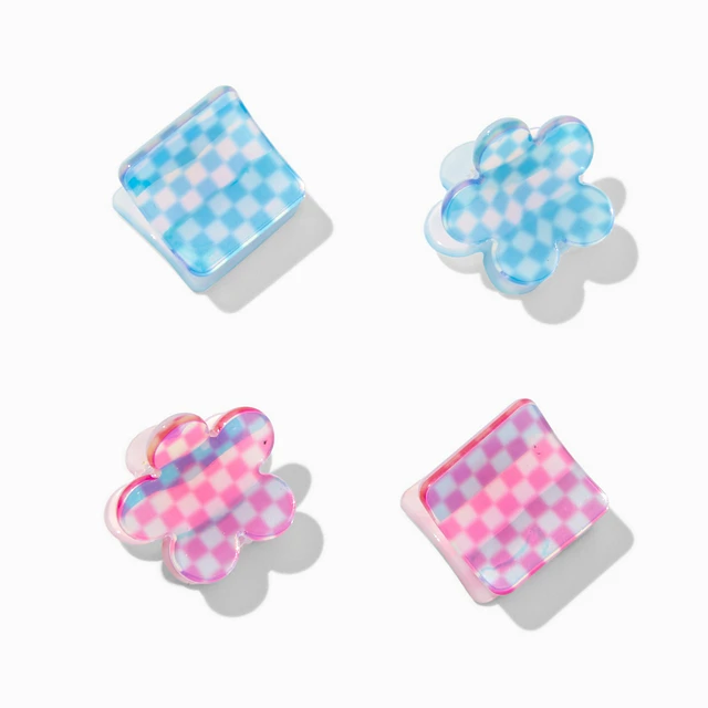 Pink Checkered Daisy Hair Claws - 2 Pack