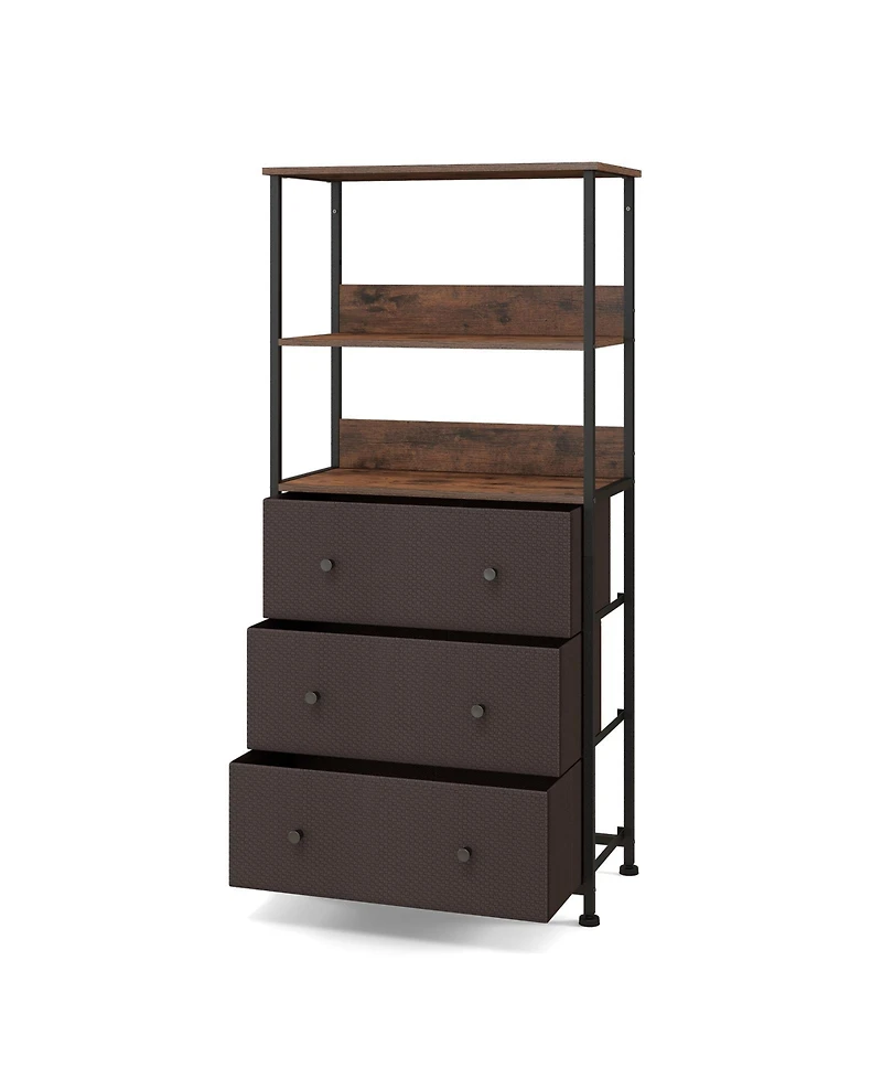 Chest of Fabric Drawer with 3 Folding Fabric Drawers and Anti-tipping Devices-Brown