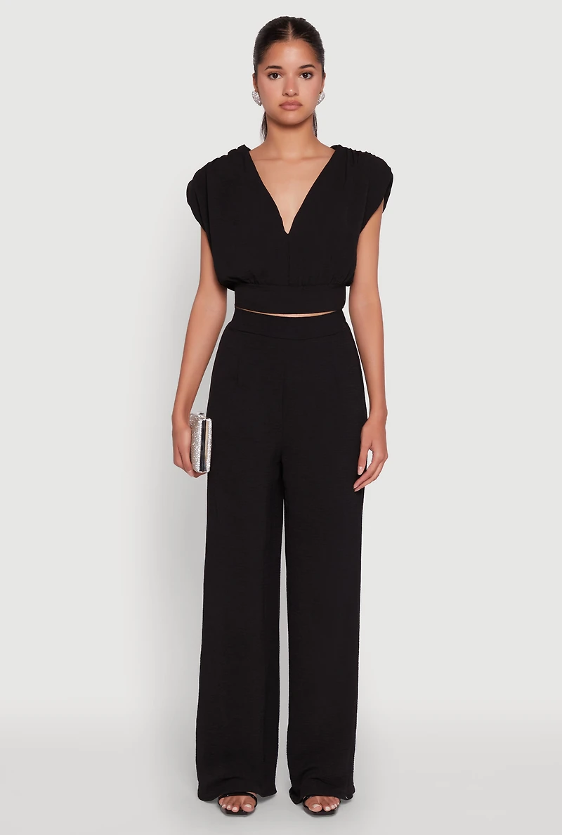 Chic Crepe Knit High Waisted Wide Leg Dress Pants