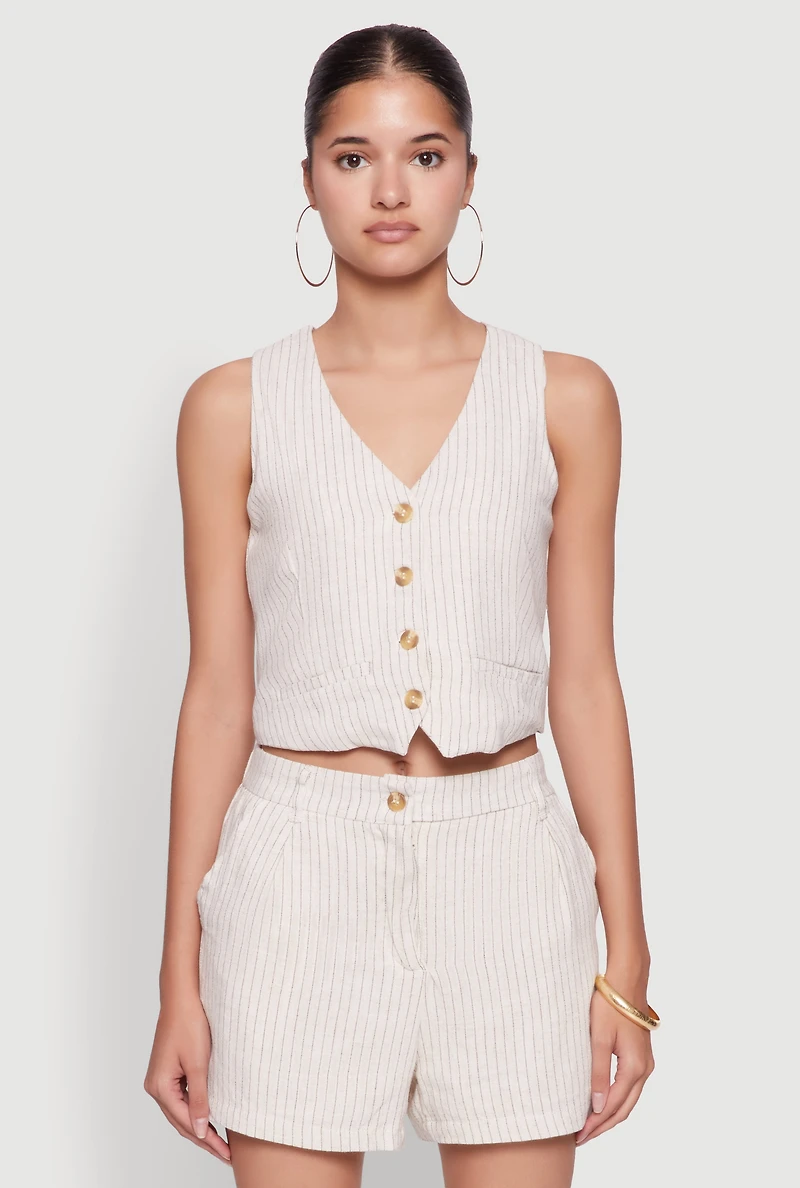 Chic Linen Pinstripe Button Front Cropped Blazer Vest in San Juan, PR