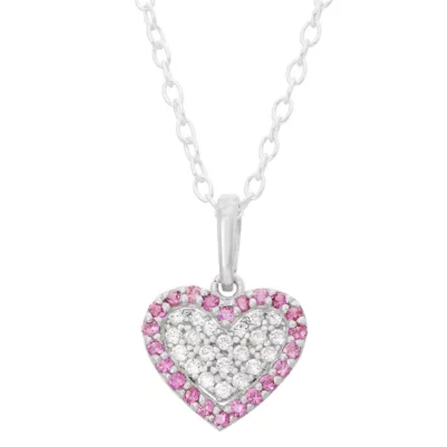 Children's 14K Rose Gold Over Silver Cubic Zirconia Heart Pendant Necklace