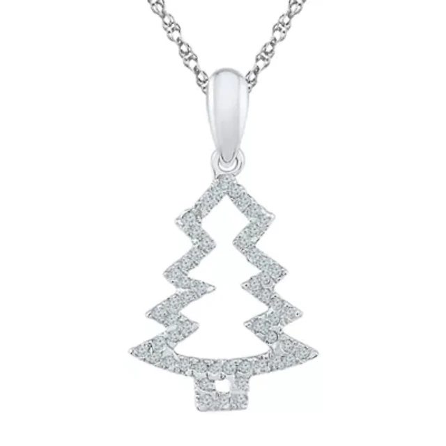 Christmas Tree Womens 1/6 CT. T.W. Natural White Diamond Sterling Silver 18 Inch Pendant Necklace