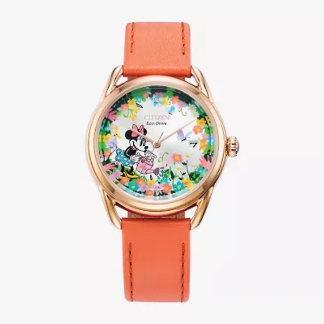 Citizen Minnie Mouse Womens Pink Leather Strap Watch Fe6087-04w