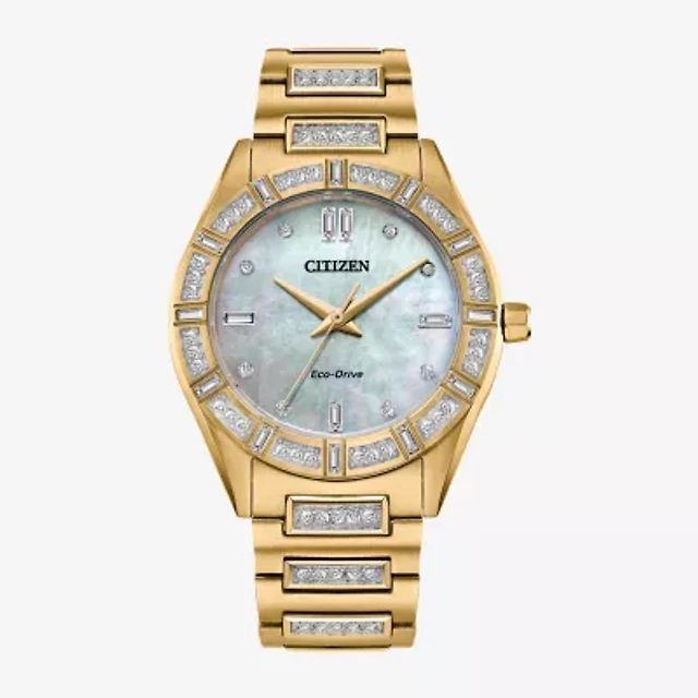 Citizen Womens Crystal Accent Gold Tone Stainless Steel Bracelet Watch Em1022-51d