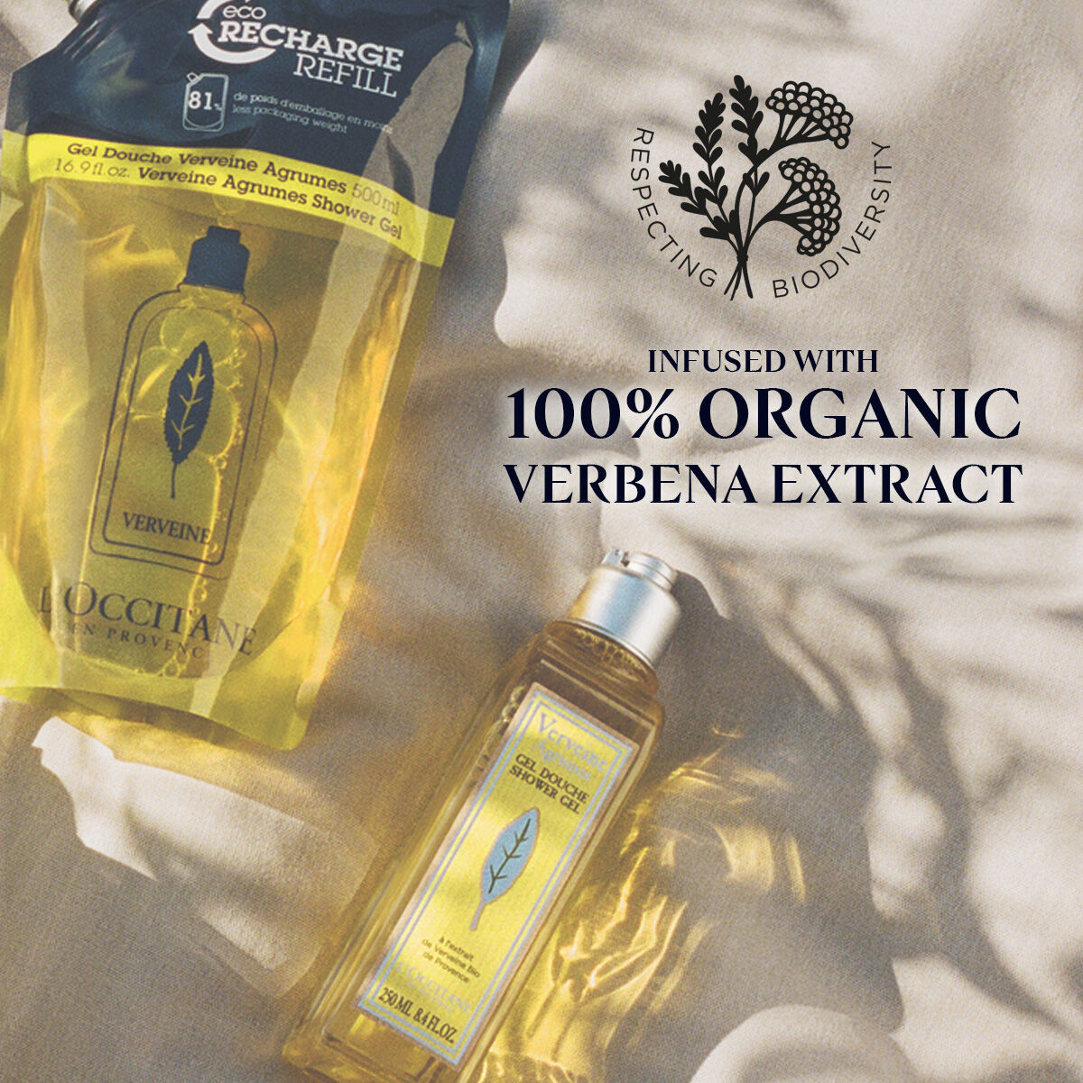This shower gel delicately cleanses skin while releasing a sparkling, zesty aroma. Discover the purifying properties of lemon essential oil, invigorating verbena extract from Provence and delicious grapefruit oil from Italy.
