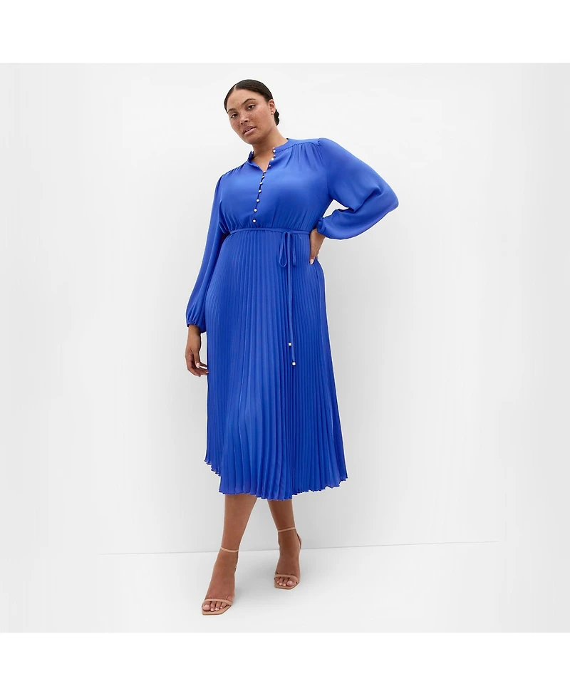 City Chic Women's Halle Long Sleeve Pleat Dress