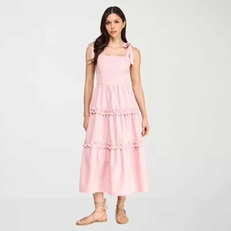 City Triangle Womens Juniors Sleeveless Midi Gingham A-Line Dress