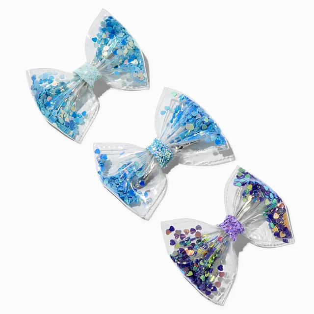 Claire's Blue & Purple Shaker Hair Bow Clips - 3 Pack