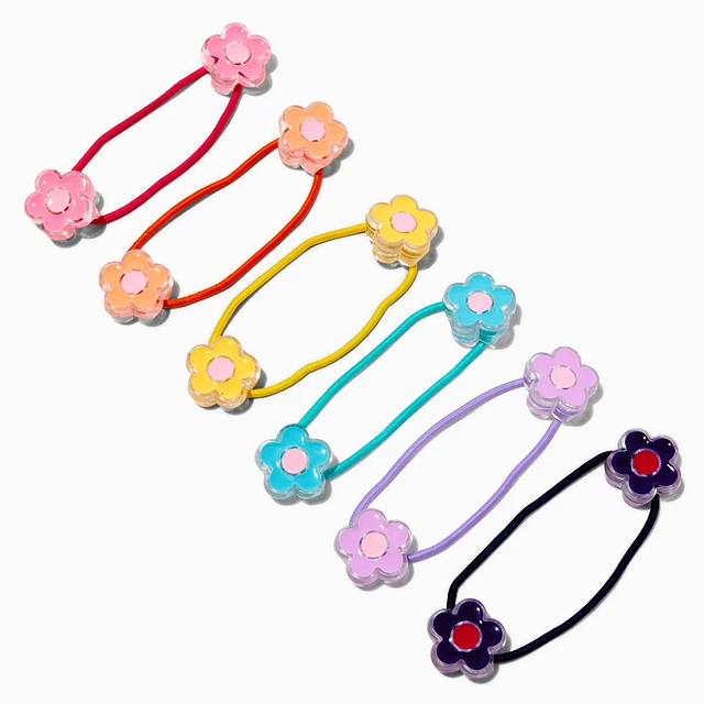 Claire's Club Bright Flower Charm Hair Ties - 6 Pack