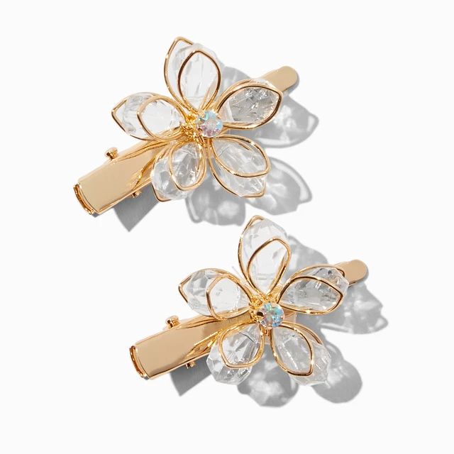 Claire's Club Gold Rhinestone Flower Hair Clips - 2 Pack