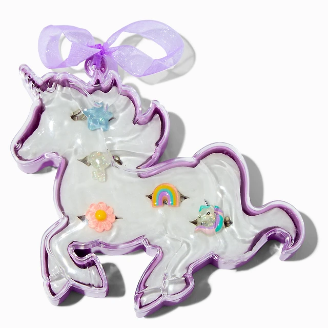 Claire's Club Lilac Unicorn Box Rings - 5 Pack