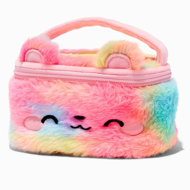 Claire's Club Rainbow Bear Furry Makeup Bag