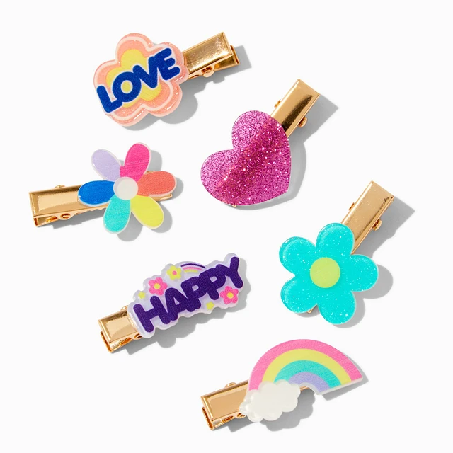 Claire's Club Rainbow Happy Hair Clips - 6 Pack