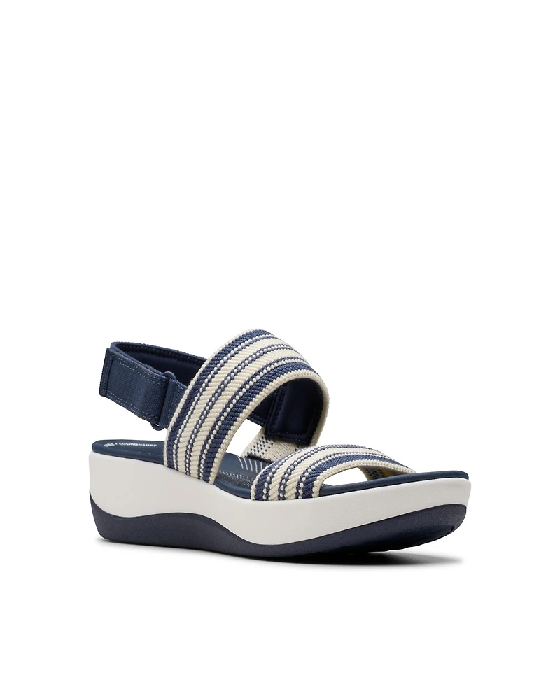 Tonal and textured straps top sporty platform heels and secure slingbacks in the Arla Stroll sandals from Clarks.