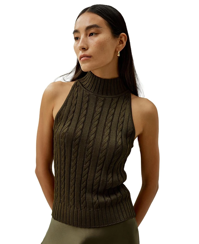 Classic High-Neck Cable-Knit Sleeveless Top for Women