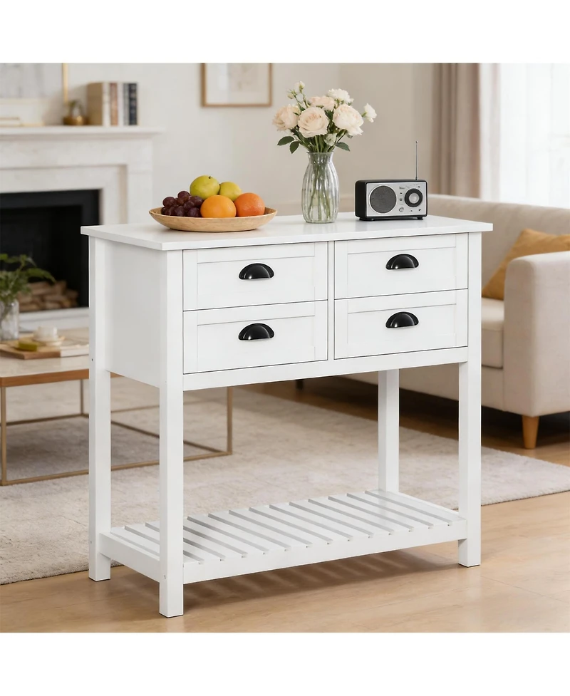 Imagine walking into a tidy entryway where your essentials are neatly stowed in this versatile storage cabinet designed for high-end living at an unbeatable value. Crafted from durable Mdf with a clean white finish it blends seamlessly with modern decor while offering 4 smooth-sliding drawers and a slatted shelf to organize shoes tableware coffee supplies or daily items. Whether used as an entryway organizer kitchen buffet living room console or hallway coffee bar cabinet it adapts to your needs effortlessly.