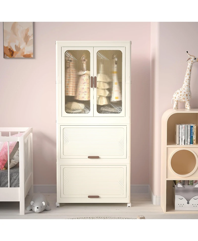 Keep kids spaces tidy and stress-free with this durable children s wardrobe. Featuring safe Pp+Abs materials, magnetic doors, easy foldable assembly, and smart classified storage with hanging rods and cubes, it makes organizing clothes and toys simple, safe, and fun.