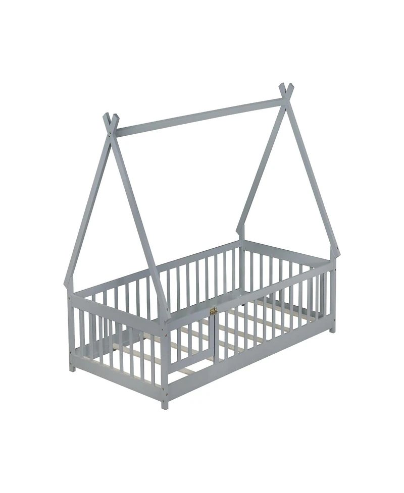 Clihome Twin Tent-shaped Floor Bed,Teepee Bed with Guardrails,Slats and Door in San Juan, PR