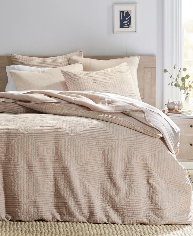 Last Act! Oake Organic Cotton Check Matelasse 3-Pc. Duvet Cover Set, King, Exclusively at Macy's