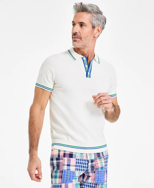 Club Room Men's Regular-Fit Stripe-Trim Sweater-Knit Polo Shirt, Exclusively at Macy's