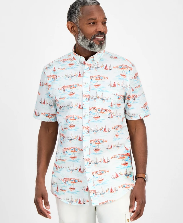 Club Room Men's Short Sleeve Sailboat Scene Print Button-Down Shirt, Exclusively at Macy's