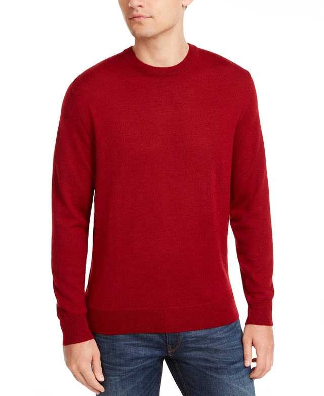Club Room Men's Solid Crew Neck Merino Wool Blend Sweater, Created for Macy's