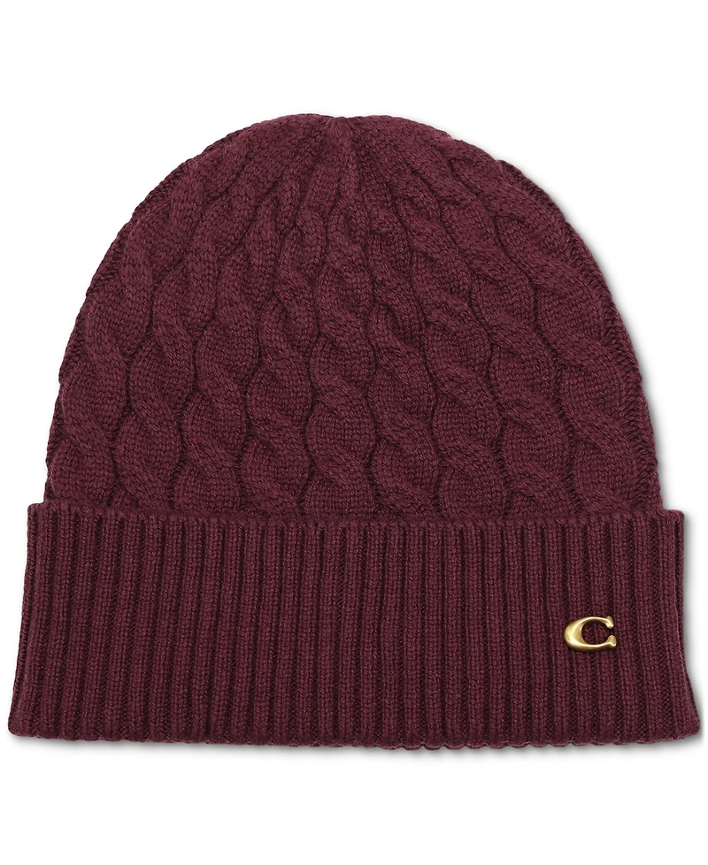 A classic cold-weather style, this soft cable-knit beanie is detailed with Coach Signature hardware for a touch of shine.
