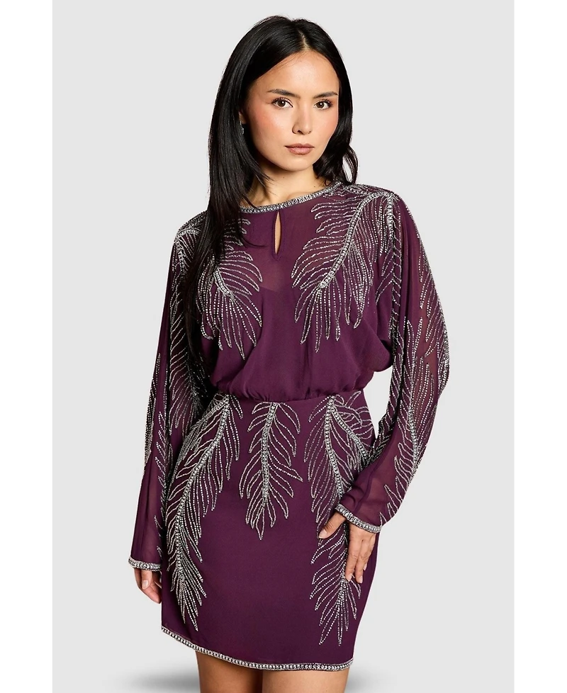 This stunning Coast mini dress makes a captivating statement with its all-over feather embellishment, meticulously hand-stitched for a truly luxurious finish. The blouson style top creates a beautifully feminine silhouette, whilst the cinched waist accentuates your figure to perfection.