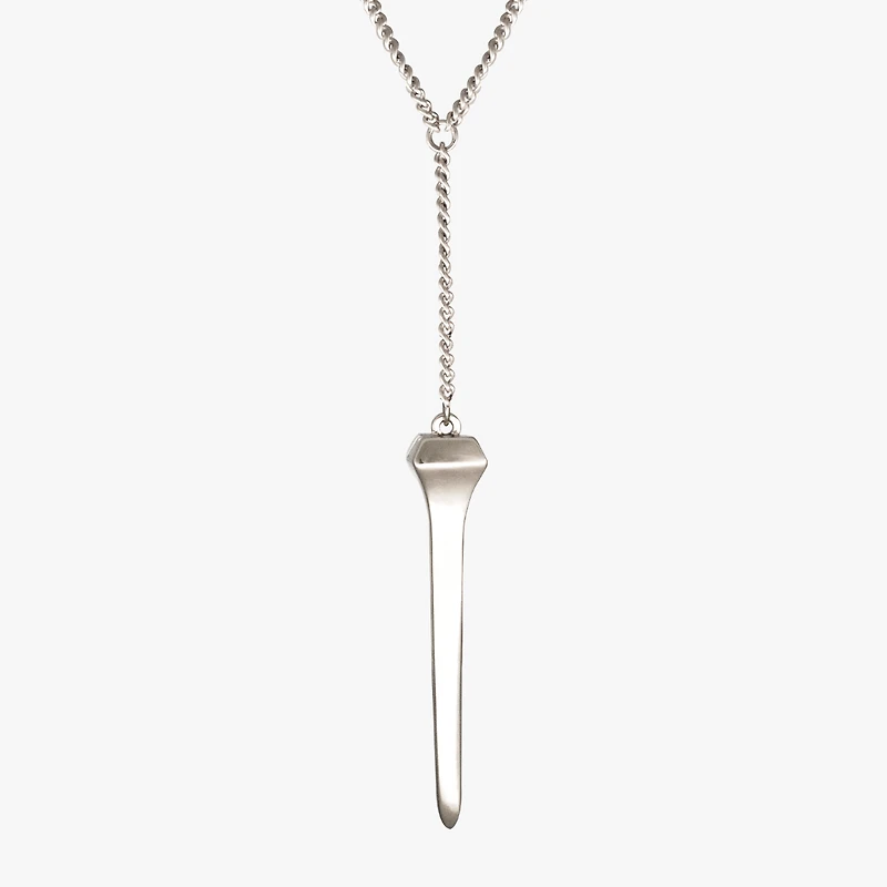 Collar péndulo de Zahorí con forma de clavo bañado en Plata. Medidas a la caja de 38, 44, 51, 57 y 59 cm más un largo de cadena con abalorio incluido de 11 mmPeso : 26,9 gr.