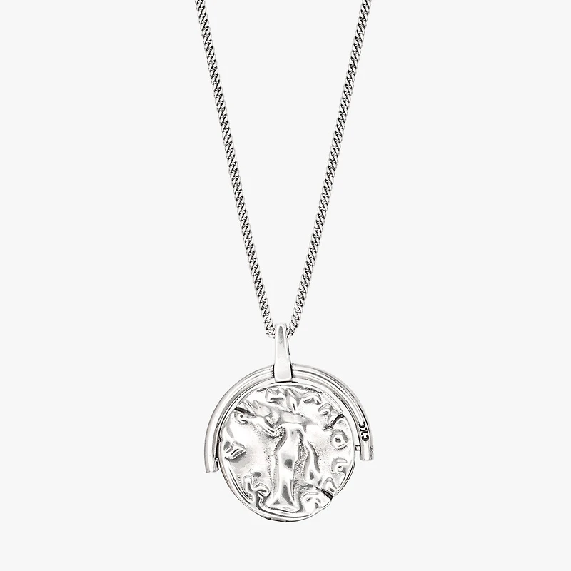 Materiales: Aleación de zinc y otros metales, cadena de latón, bañados en plata Medidas: - Largo collar (en maniquí) 37 - 47 cmdesde la base del cuello- Ancho cadena 4 mm- Tamaño del abalorio: 6,5 x 8 cm