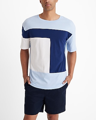 Cut in a slightly oversized fit for a modern look, this short sleeve tee features a crew neck and a color blocked print.