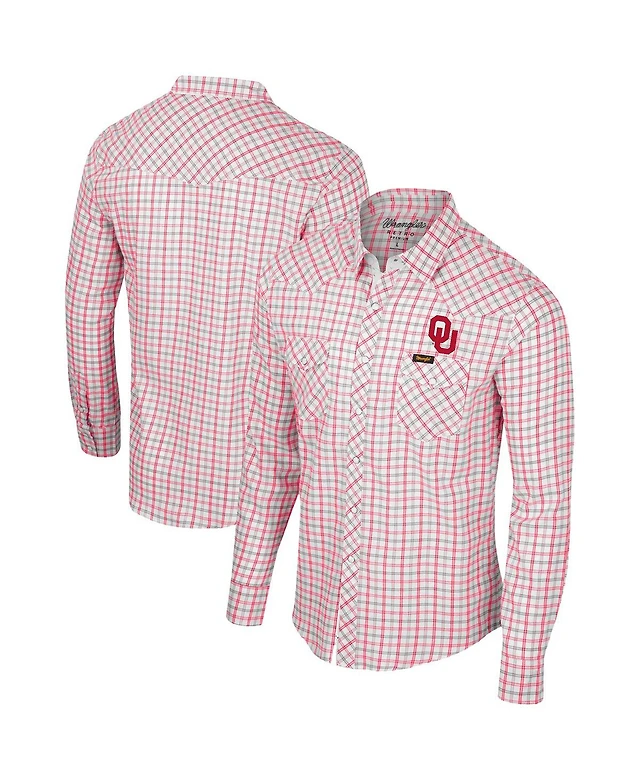Colosseum x Wrangler Men's White Oklahoma Sooners Plaid Windowpane Long Sleeve Full-Snap Shirt