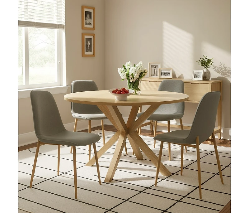 Compact 5-Piece Dining Set with 39.5 Inch Round Table and 4 Chairs, Natural Wood Look for Small Kitchens or Apartments-Maison Boucle