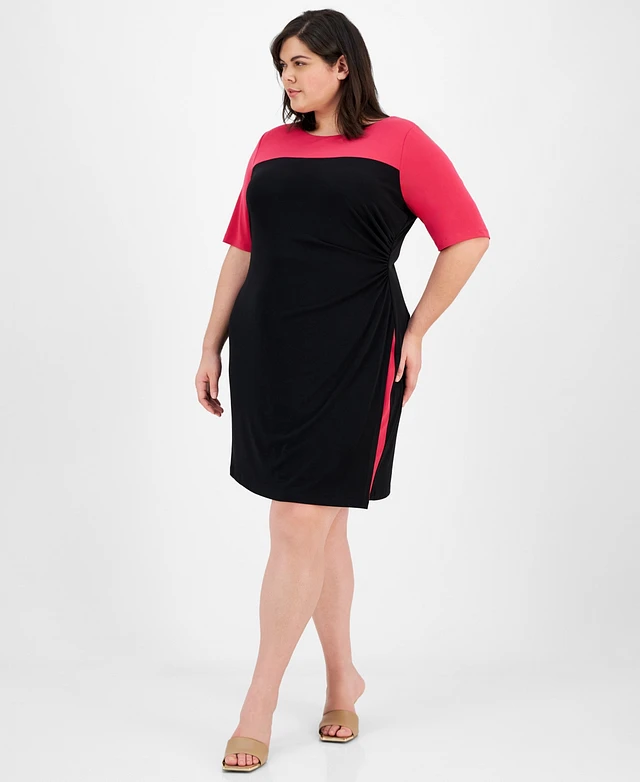 Kasper Plus Size Asymmetric Elbow-Sleeve Sheath Dress