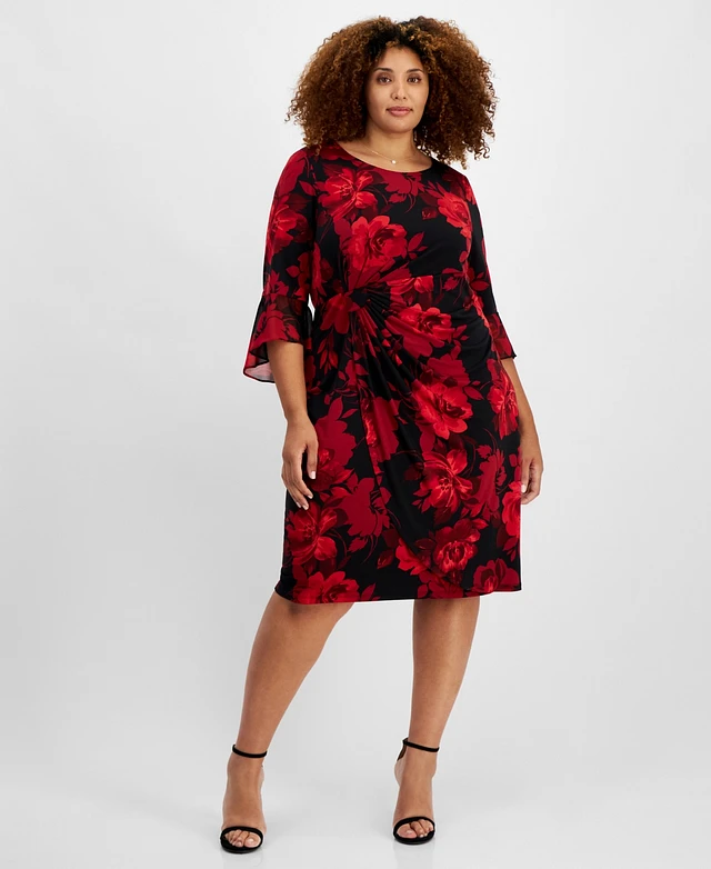 Connected Plus Draped Flutter-Sleeve Sheath Dress
