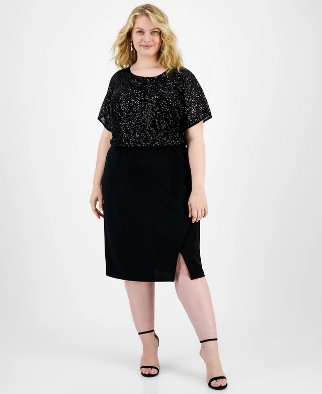 Adrianna Papell Plus V-Neck Long-Sleeve Sequin Sheath Dress