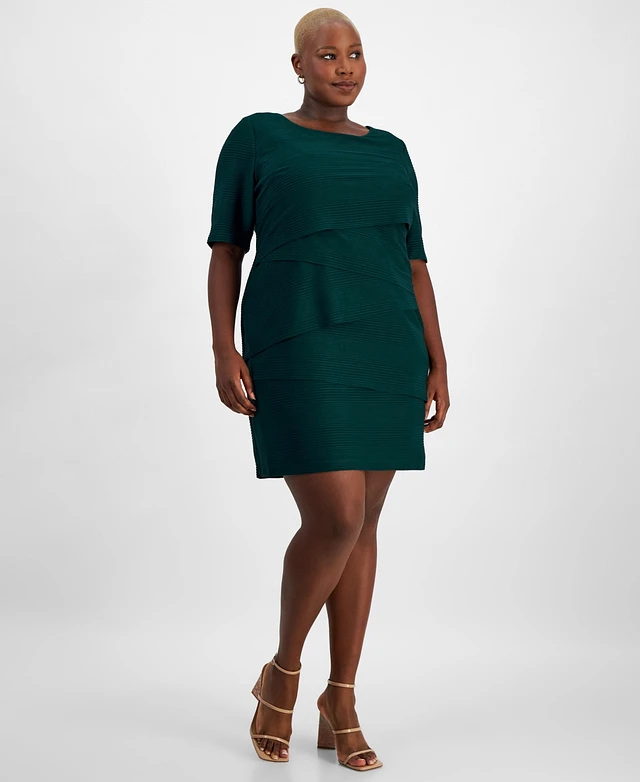 Connected Plus Draped Flutter-Sleeve Sheath Dress