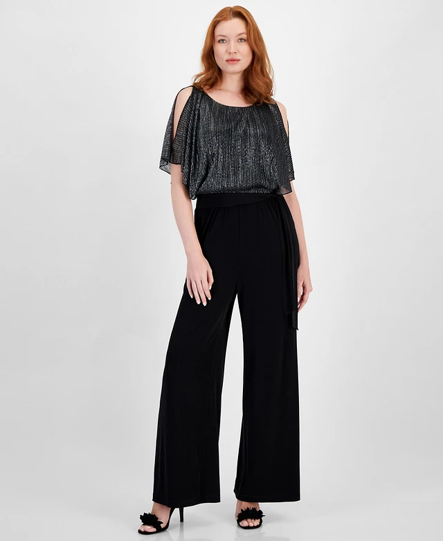 Connected Women's Metallic Cold-Shoulder Jumpsuit