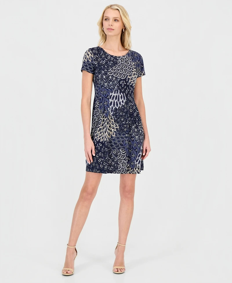 Connected Women's Printed Short-Sleeve Fit & Flare Dress