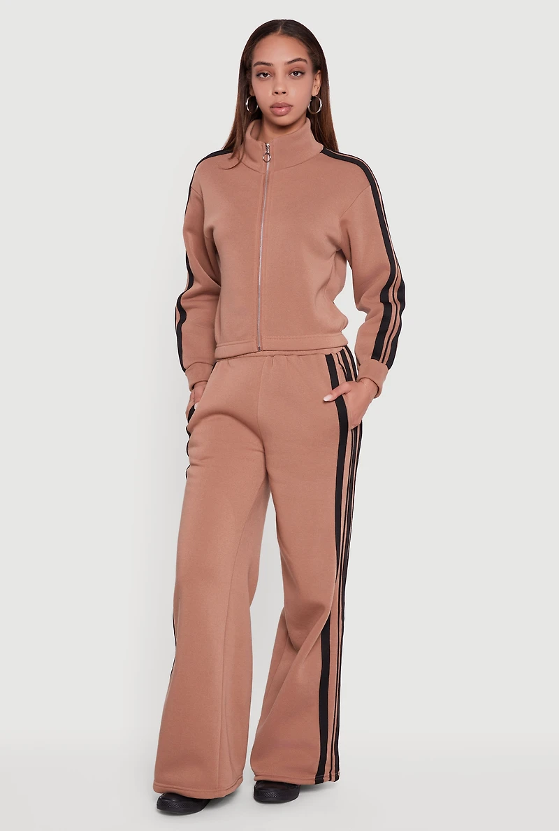 Contrast Trim Fleece Lined Wide Leg Pants