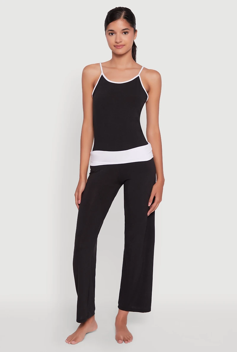 Contrast Trim Pajama Cami and Fold Over Pants Set