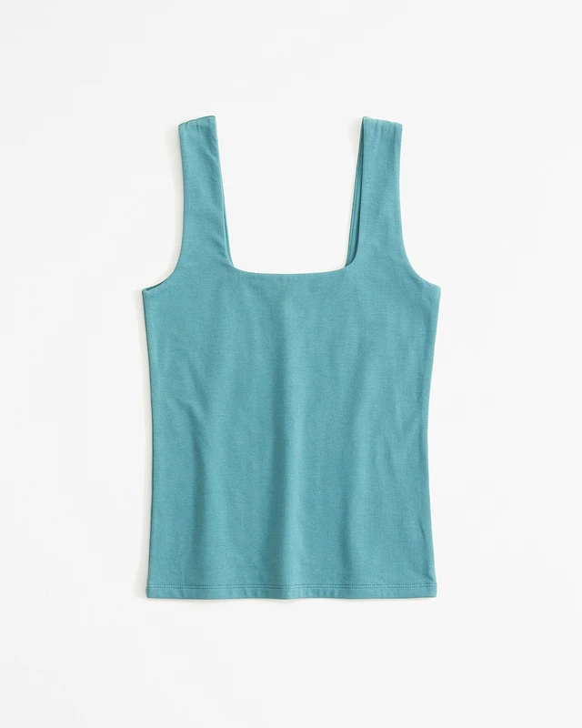 Cotton-Blend Seamless Fabric Squareneck Tank